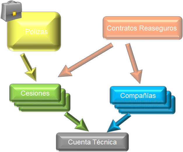 3.1.REASEGURO. El módulo operativo de reaseguro engloba y aglutina en conjunto de procesos de cálculo, seguimiento y control del reaseguro cedido, inherente a la actividad aseguradora. Se compone de tres partes, que representan a cada una de las tres entidades informáticas con las que trabaja: contratos, cesiones (de prima y de siniestro) y cuenta de reaseguro (cuenta técnica, cuenta de depósitos y cuenta de participación en beneficios).
